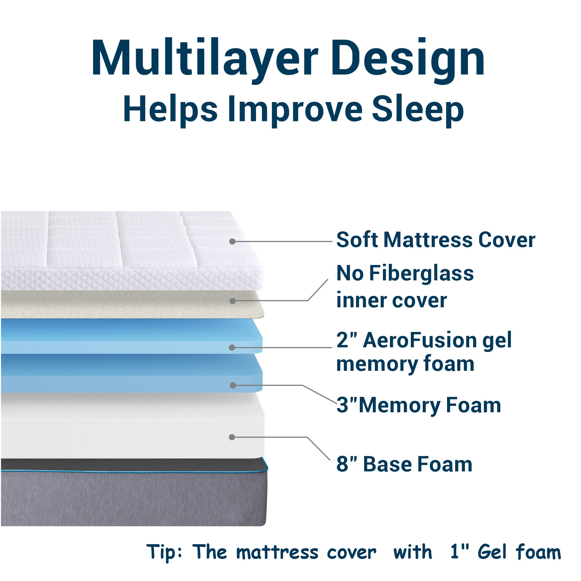 Layered Design: The mattress features a layered memory foam design with gel-infused memory foam with a supportive Flex Support Foam Base making the mattress more comfortable and durable.