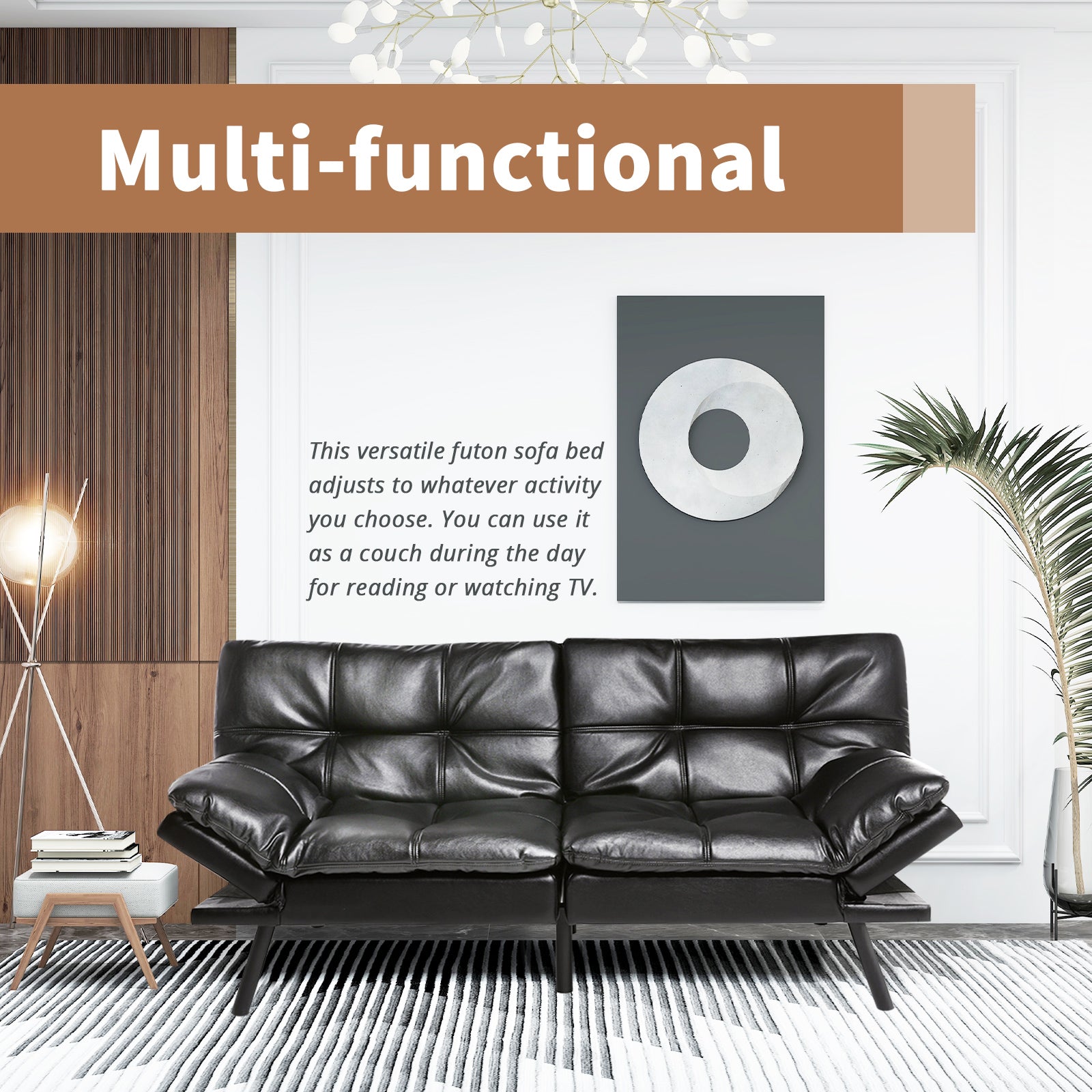 • Stylish & Quality Design - Durably crafted with tufted faux leather and 6 chrome metal legs easy to clean and maintain this convertible futon sofa bed fuses comfort and style that will last in your living space for years to come.