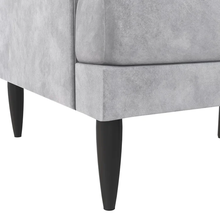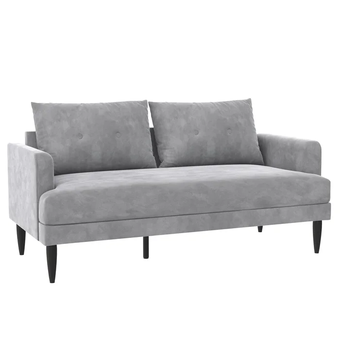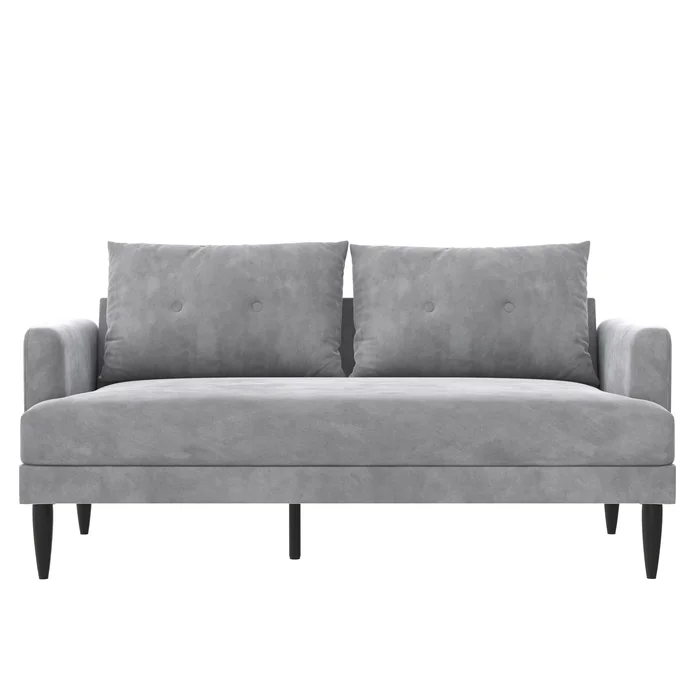 Product dimensions: 26.5L X 60W X 33H. Weight limit: 400 lbs. Net weight: 69.5 lbs. Shipping dimensions: 60L X 17W X 27H. Gross weight: 85 lbs. Perfect for Small Spaces:The loveseat is capable of fitting in small spaces and comfortably seats up to two people. With minimal assembly required you can enjoy the loveseat as soon as it arrives at your door. The elegantly shaped couch evokes a bygone era when high-end décor was the norm and not the exception. Updated with modern touches the bailey has been crafted with a sturdy wood frame that sits on dapper black steel metal tapered legs. High-quality design traits such as indulgently comfortable t-cushion seating shelter arms and classic vertical button-tufted detailing on the pillow backrest set the bailey apart from the rest of the competition in terms of personality.