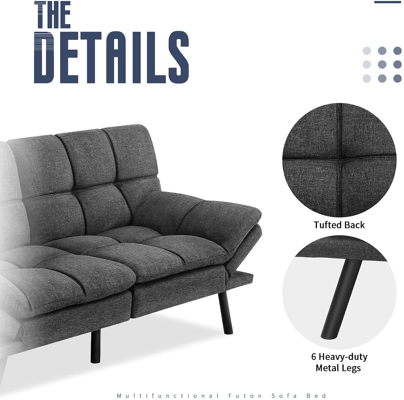 Multifunctional Futon Bed - This futon sofa bed can easily adjust to whatever activity you have -from friendly chat reading or watch TV time to having a quick nap or a good-night sleep.