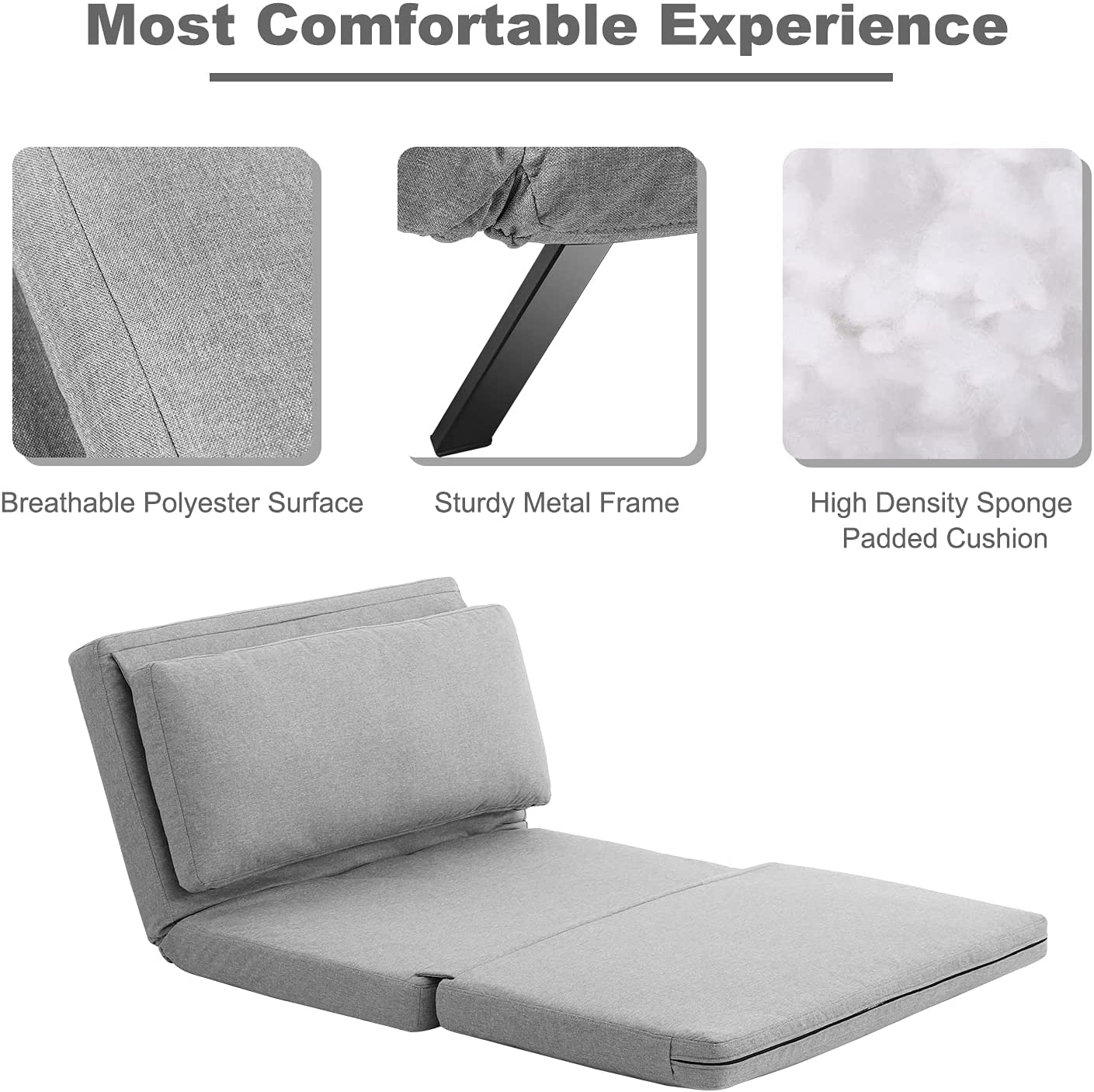 【Modern Living Essentials】: Our recliner sofa features a sturdy and durable solid metal frame and thick upholstery for outstanding comfort and stability. From upright to flat it easily and quickly converts to 3 forms of a sofa chair floor couch and lazy sofa sleeper bed in a few seconds to meet your various needs.