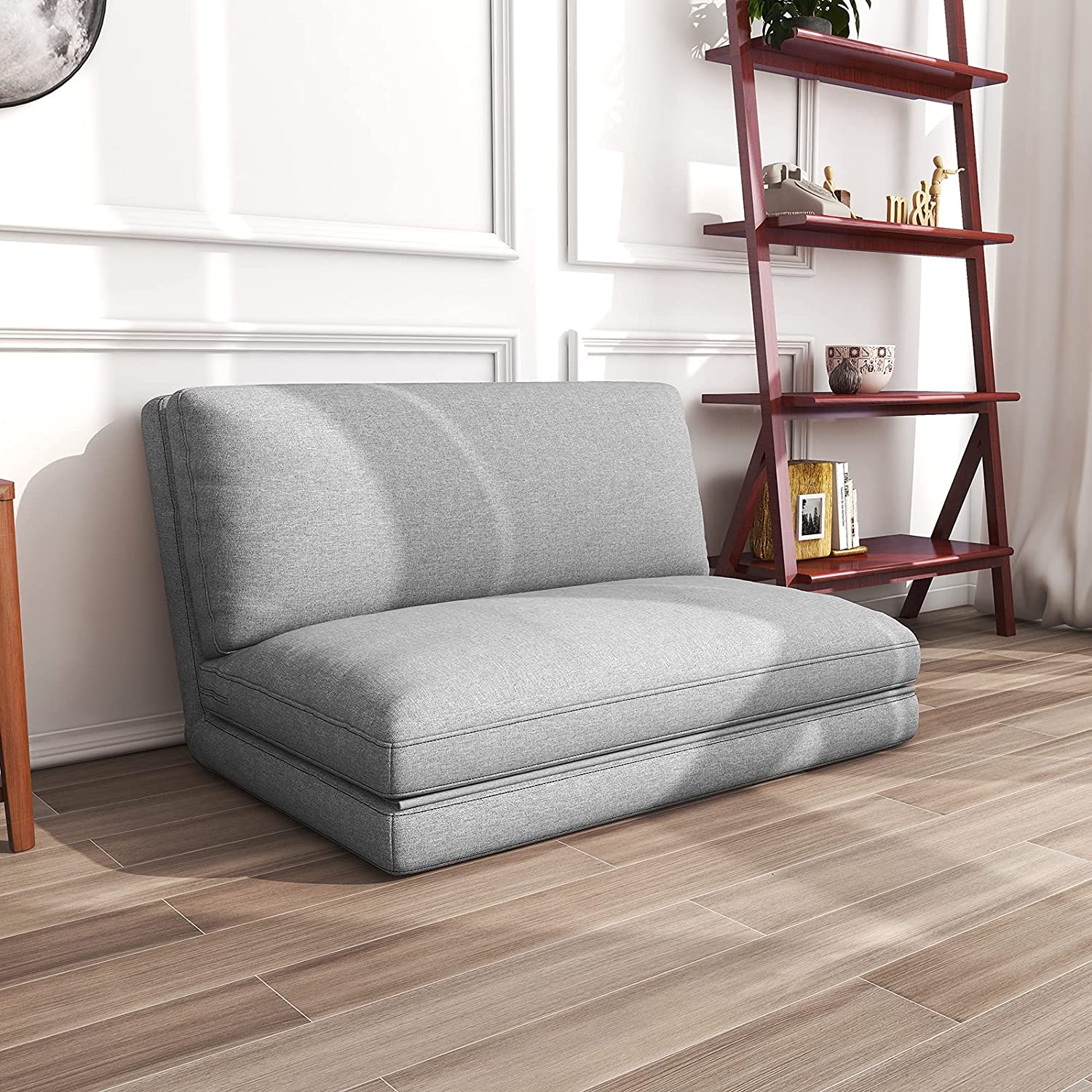 【Flexible Tilt Angle】: The backrest of this adjustable floor sofa has 5 reclining positions adjustable from 90° to 180°. This loveseat is enough to support your body without leaning against the wall behind you making it easy to find the perfect relaxation position while reading watching TV or playing video games. It's the first choice sleeper sofa pull-out bed for relaxing or napping on its foldable nature.