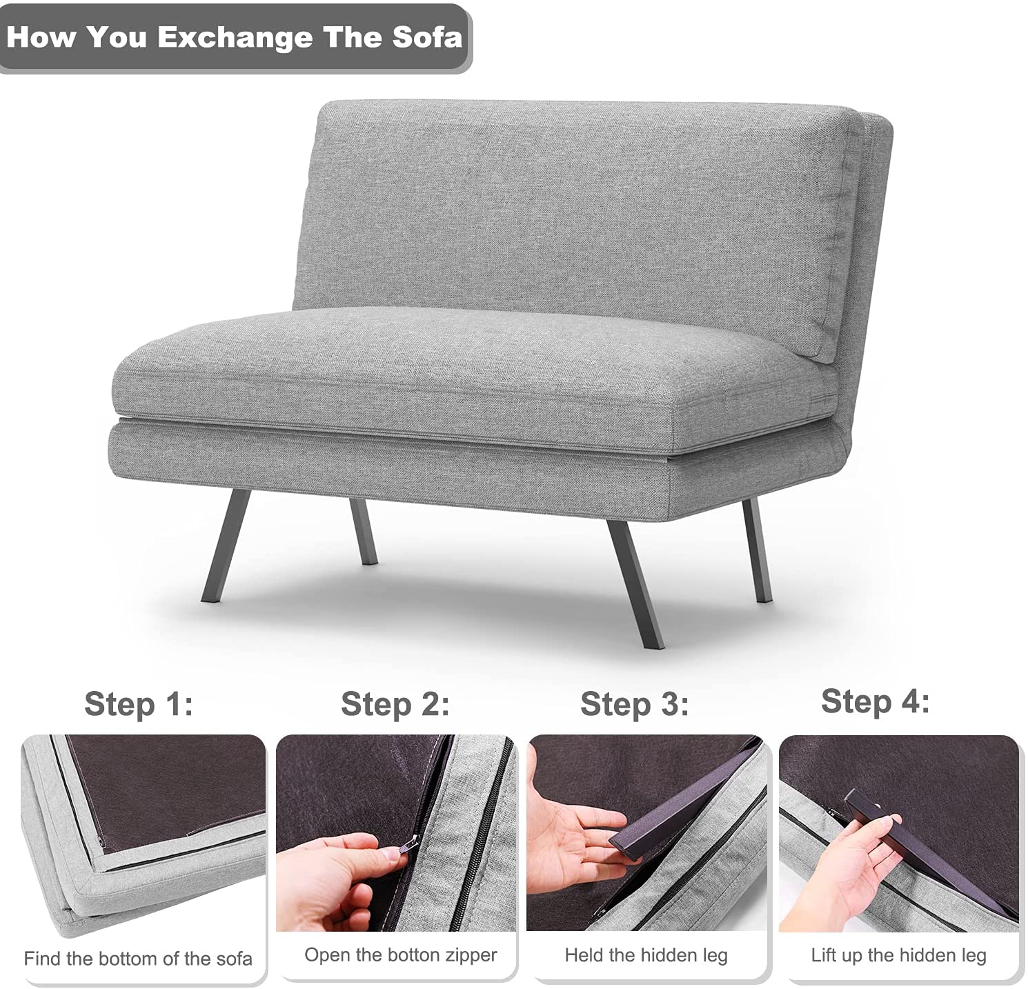 【No Assembly Required】: Modern convertible sleeper chair bed size: 37.6 L x 29.3 D x 16.7 H carrying capacity: 265 lbs/120 kg. The sleeper sofa bed comes with 4 concealed legs that do not require installation and are ready to use after unzipping the zipper. You can also follow our introductory manual and video to use it. If you need any assistance please do not hesitate to contact us.